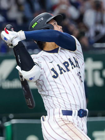 WBC・日本―韓国。3回、同点のソロ本塁打を放つ日本代表の大谷=7日、東京ドーム 【時事通信社】