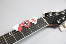 ラインアップは、ギターピック(赤・白、各220円)と、ギターストラップ(4,950円)の2種類。串鳥の店舗外観をイメージした紅白デザインにロゴをあしらい、「郷土愛をさりげなく表現できるステージ映えするアイテム」に仕上げたという。