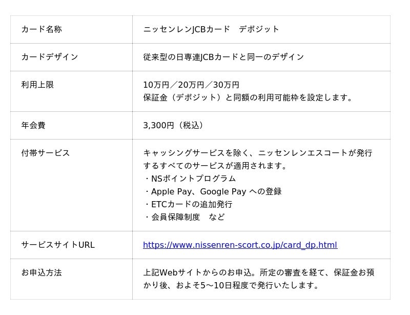 株式会社ニッセンレンエスコート(札幌市中央区、代表取締役社長執行役員:竹田 淳、以下「ニッセンレンエスコート」)は、2025年10月22日より、事前に保証金(デポジット)を預け入れることで利用可能となるデポジット型クレジットカードの提供を開始いたします。