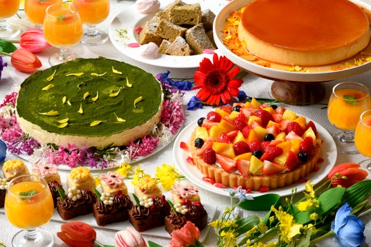 デザートコーナーには、椿茶と桜を合わせたやさしい味わいのシフォンケーキをはじめ、宇治抹茶のティラミスやこだわり卵のカスタードプリンなどの多彩なスイーツやアイスなどが並びます。ディナー限定として、ワッフルフルーツサンドや温かいチェリージュビレ、ライブキッチンで仕上げるシュークリームなど、夜ならではの贅沢なデザートもご堪能いただけます。