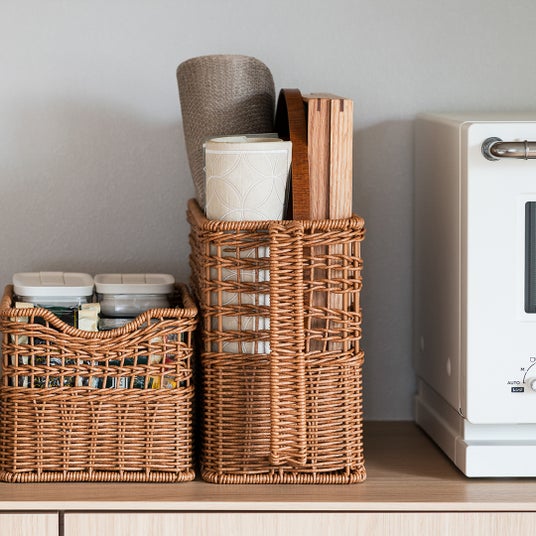 洗えるPPラタンバスケット スリム深