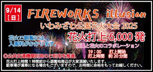 『FIREWORKS illusion いわみざわ公園花火大会』は、北海道グリーンランドにて9月14日(日)に開催いたします。