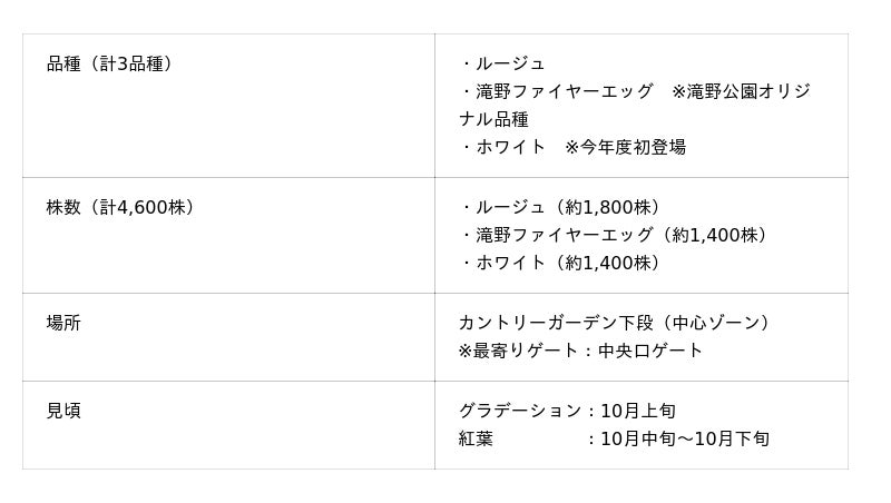さらに今年は紅葉しない品種「ホワイト」が初登場。どんな景色になるのかは晩秋のお楽しみ!