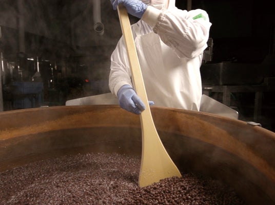 餡のおいしさは、和菓子のおいしさの要のため、自社工場で確かな経験と技術を持つ和菓子職人たちが、小豆の様子を見ながら素材本来の味を引き出す炊き方を細かく調整しています。