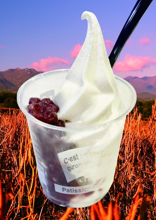 2025年の新小豆を使用して作った粒あんと、さっぱりとしたミルク感が魅力のソフトクリームを組み合わせてサンデーにしました。