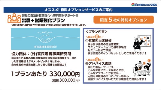 - 会期前後を通じて、自治体職員に“刺さる”効果的な出展方法を習得
