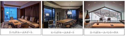 付帯施設: オールデイダイニング(1)、ファインダイニング(1)、 インフィニティ温泉(2)、檜の温泉(2)、スパ、 スキーレンタル&ショップなど