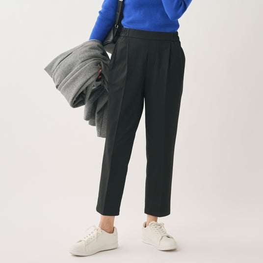 11月7日発売の「美ストレッチ裏起毛テーパードパンツ」は、圧倒的人気のテーパードシルエットを冬仕様にアップデートしました。裏側の起毛素材は肌当たりも優しく保温もバッチリ。