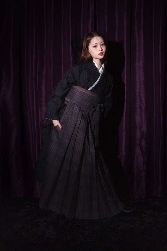 伝統的な袴姿でありながら、現代的なファッションセンスが光る、洗練された着こなし。