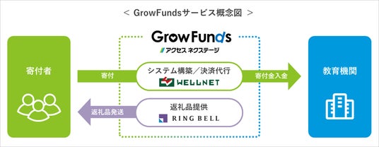 リンベル株式会社(以下リンベル、本社:東京都中央区、代表取締役会長CEO:東海林 秀典)、株式会社アクセスグループ・ホールディングス(東証スタンダード/福証本則・7042)の事業子会社で、人財ソリューション事業、教育機関支援事業を展開する株式会社アクセスネクステージ(以下アクセスネクステージ、本社:東京都渋谷区、代表取締役社長 増田智夫)、決済ソリューションの開発・提供を手掛けるウェルネット株式会社(東証スタンダード/札証本則・2428、以下ウェルネット、本社:北海道札幌市、代表取締役社長 宮澤一洋)は共同で、教育機関に向けて返礼品付き寄付プラットフォーム「GrowFunds」を開発し、本サービスの提供を開始いたしました。