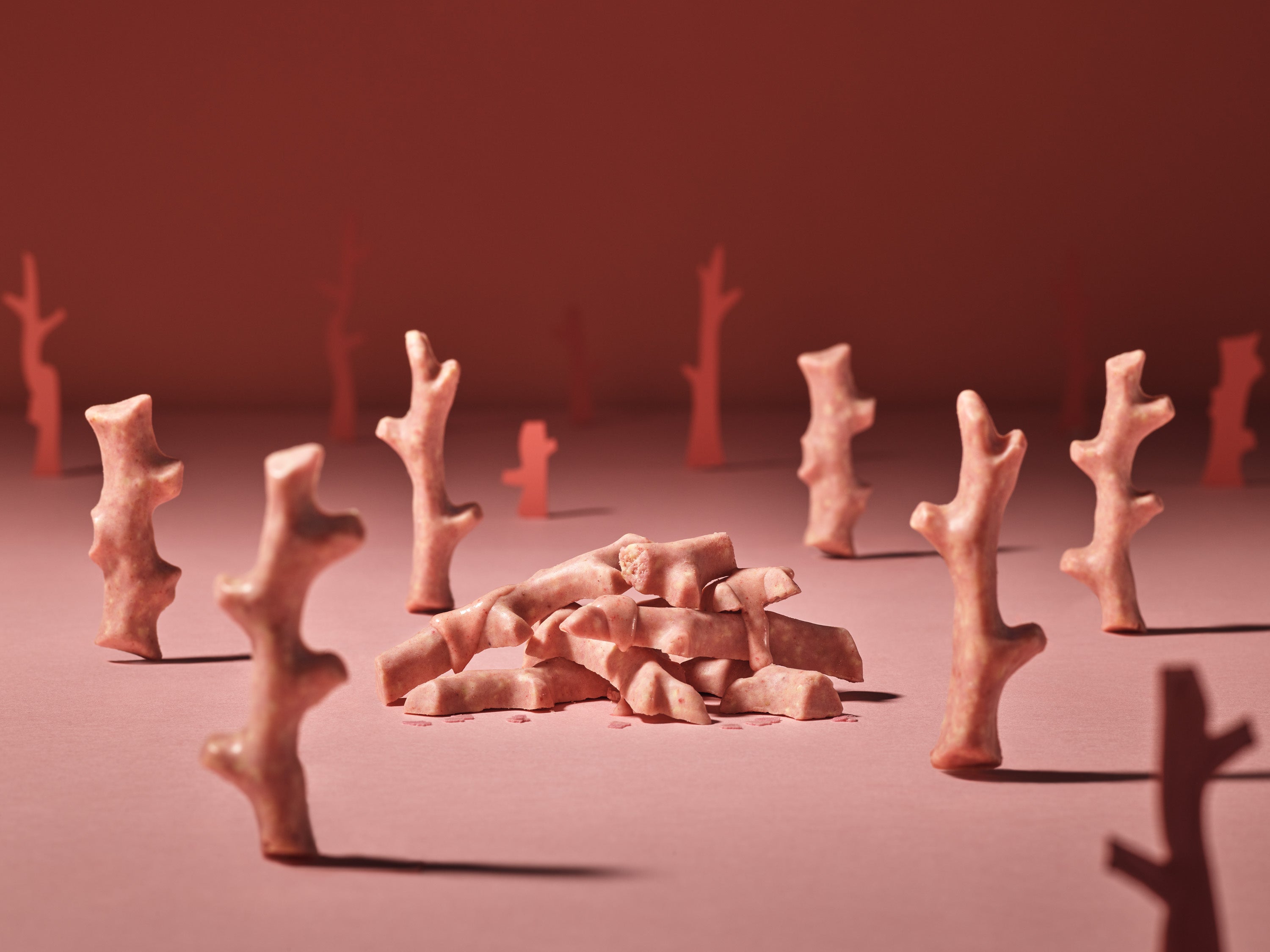 15年間研究を重ねた“挟み焼き”で香ばしく焼き上げたバタークッキーに、チョコレートとクラッシュアーモンドが生み出すザクザク食感、そしてイチゴの甘酸っぱさと放牧ミルクが香る“ふわふわ”のイチゴのムースをたっぷりと閉じ込めました。仕上げには、ストロベリーチョコレートをまとわせ、愛らしいどんぐり帽子のフォルムに仕立てた生チョコレートケーキです。