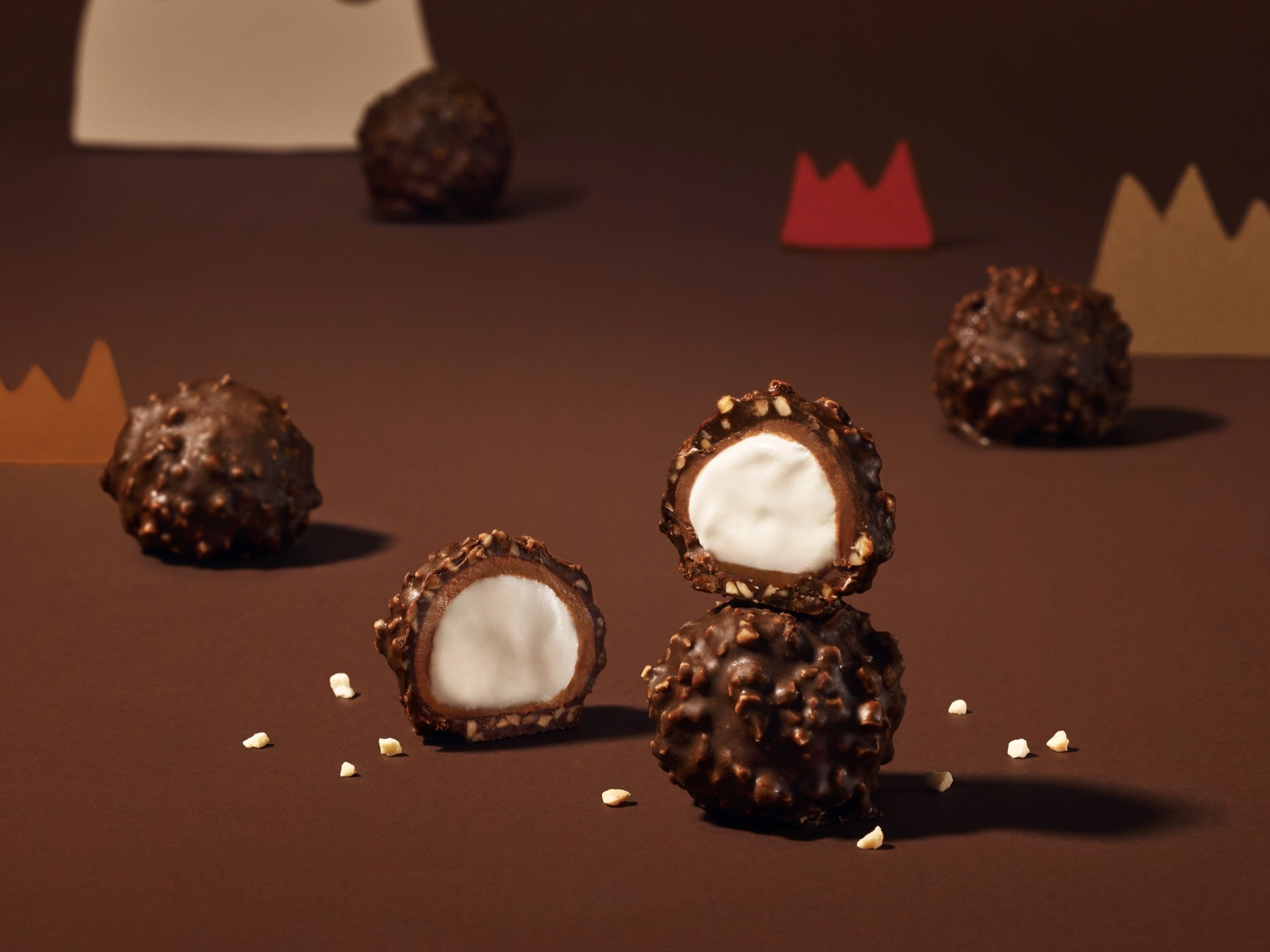 冬の放牧ミルクを加えた生クリームを生チョコレートで包んだ、まろやかな生トリュフチョコレートに、ザクザクとした食感のビターなアーモンドチョコレートを纏わせました。代表商品「スノーボール」よりも一回り大きく、贅沢なサイズ感の“パリッ・フワッ・トロッ”のトリプル食感を楽しめる生トリュフアーモンドチョコレートです。