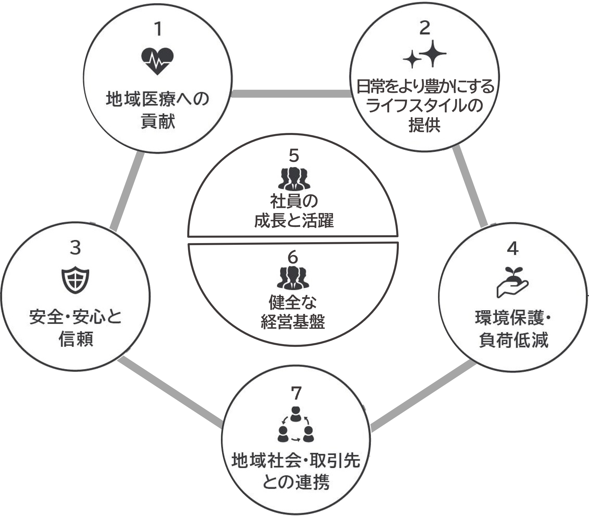 当社グループは、人々の健康や日常の豊かさに貢献する事業を通じ、グループ・ステートメントでもある「お客さまの元気と笑顔」を実現し続けるため、良識と倫理観を持った企業活動を行ってきました。これからも、お客さまをはじめ、多様なステークホルダーの皆さまのことを考え、自ら変化し行動することで、企業の持続的な成長と、社会・環境・経済価値を創出し、サステナビリティ経営を実現します。