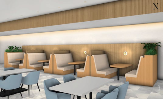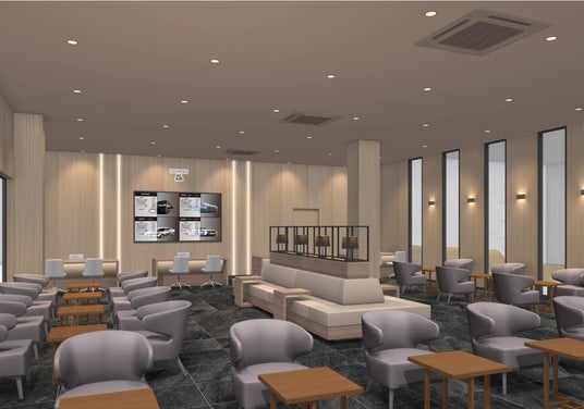 お客様にゆったりとお過ごしいただけるよう、空港のラウンジのような落ち着いた雰囲気を持たせ、高級感のあるデザインに仕上げています。カフェは様々な種類のお飲み物をご用意しており、商談スペースやラウンジスペースへ自由にお持ち込みいただけます。