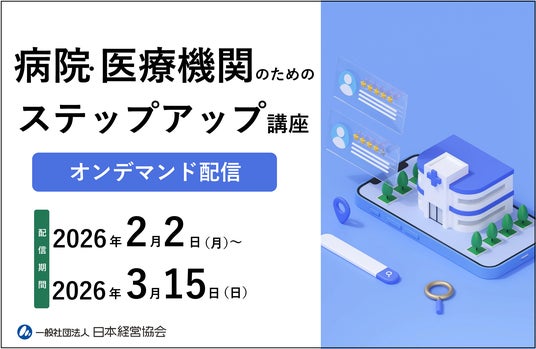 一般社団法人日本経営協会(本部:東京都渋谷区、会長:高原 豪久)は、医療機関運営の基盤となる「医事」「労務管理」「サイバーセキュリティ」「病院会計」の4領域を横断的に学べる「病院・医療機関のためのステップアップ講座」を、2月2日~3月15日の期間、オンデマンド形式にて配信いたします。