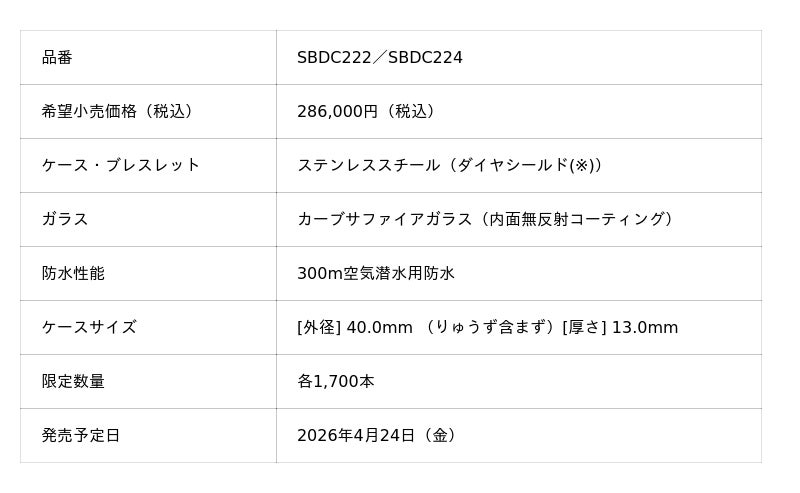 さらに、『<セイコー プロスペックス> ダイバーズ 1965 ヘリテージ 大谷翔平 2026限定モデル』2種を、2026年4月24日(金)より日本国内で発売いたします。本モデルは、常に最大限のパフォーマンスを追求する大谷翔平選手の偉大な功績を称えた特別なデザインで、各1,700本の限定発売となり、本日より予約を開始いたします。希望小売価格は各286,000円(税込)です。