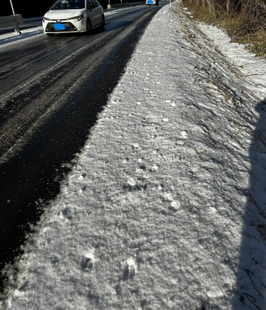 雪原の足跡からは、ガードレールを無理に越えず、並行して移動する行動が確認されました。