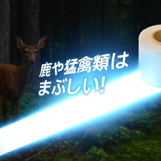 ヒトデから抽出した「マリンサポニン」がシカに本能的な警戒心を抱かせ、さらに独自の「光」の技術が視覚的にその足を止めさせる「Deer Block」忌避テープの製品化を進めました。
