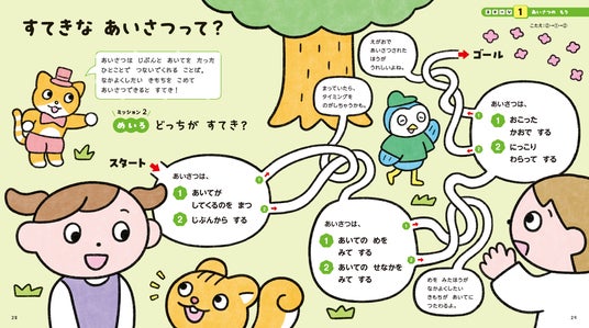 ステージごとに、あいさつや食べ方、公共マナー、自分や友達を大切にする力など、「すてきなふるまい」を身につけることができます。